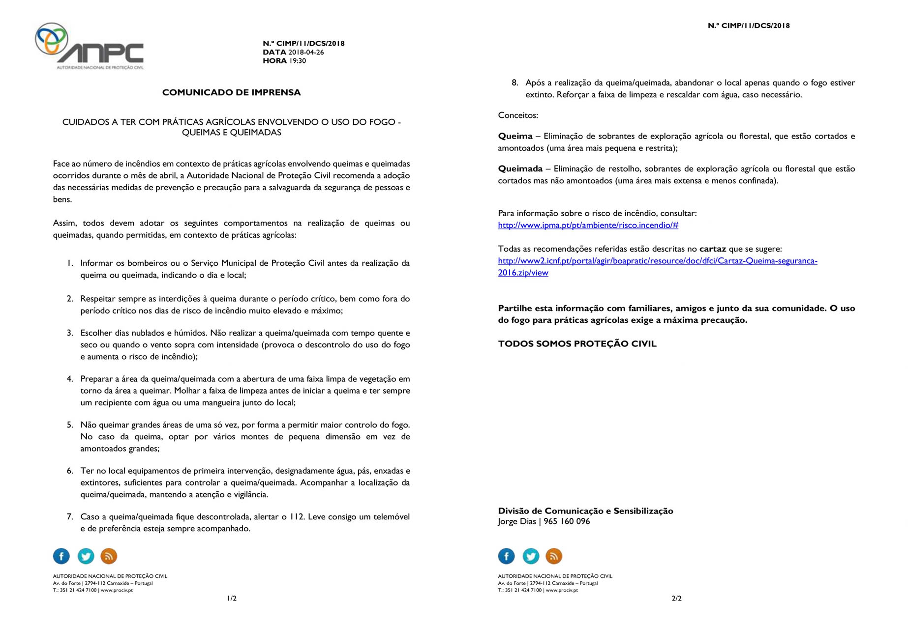 Comunicação de incidentes