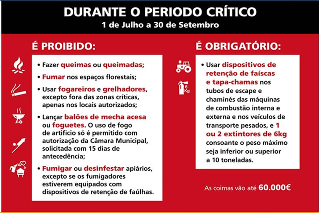 Tenha em atenção que durante o Período Crítico nos espaços florestais e agrícolas não é permitido (a):